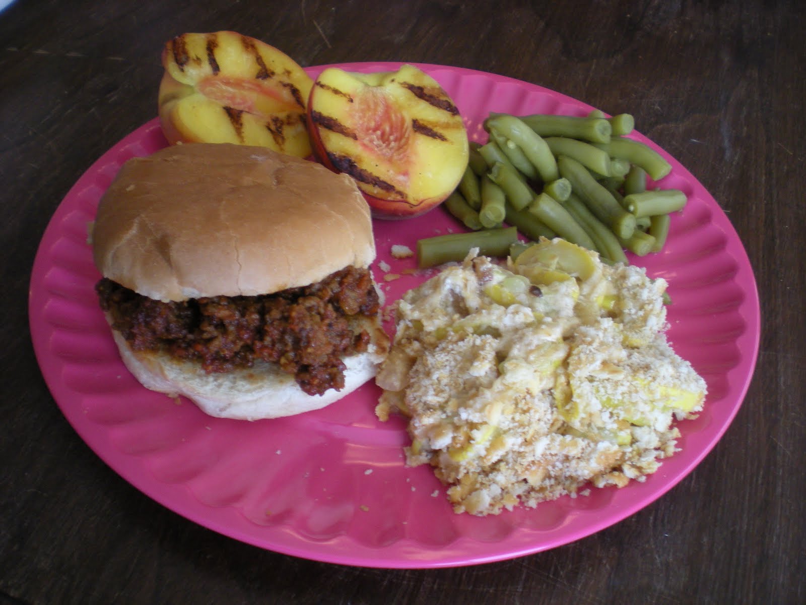 I got this recipe from my friend Jane and it's super gooooooood! I again used those fresh peaches from the farmers market! (note that I only made a half batch but this recipe makes a full 13x9)